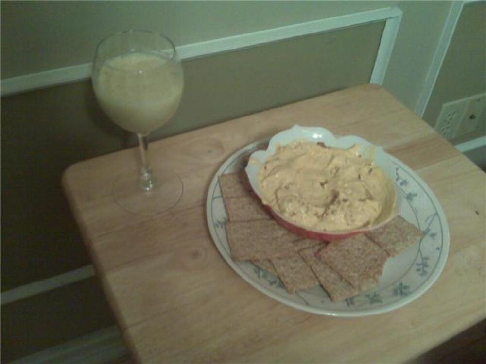 Sipping soy nog and munching on whole wheat crackers and homemade pumpkin dip