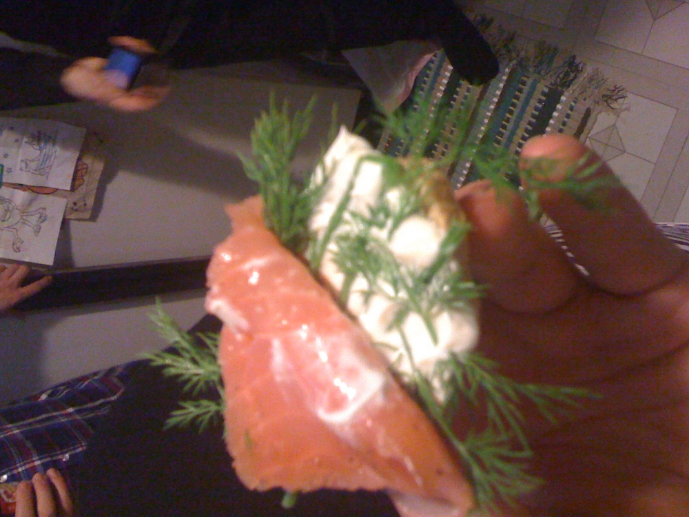 Smoked salmon with cheese and dill... later that evening I ate a large branch of dill just by its self! it was really good!